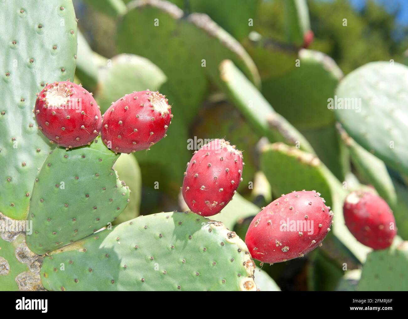 Close Up Of Red Flower Prickly Pear Cactus Fruit On The Cacti The Fruit Of Prickly Pears Is Edible But It Must Be Peeled Carefully To Remove The Sma Stock Photo